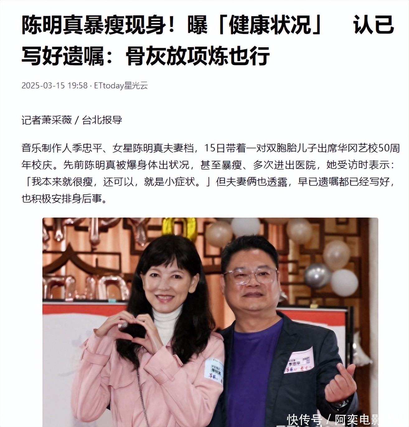 随后,妻子二东说念主安心相告,他们早已立下遗嘱,还在积极安排死后事。