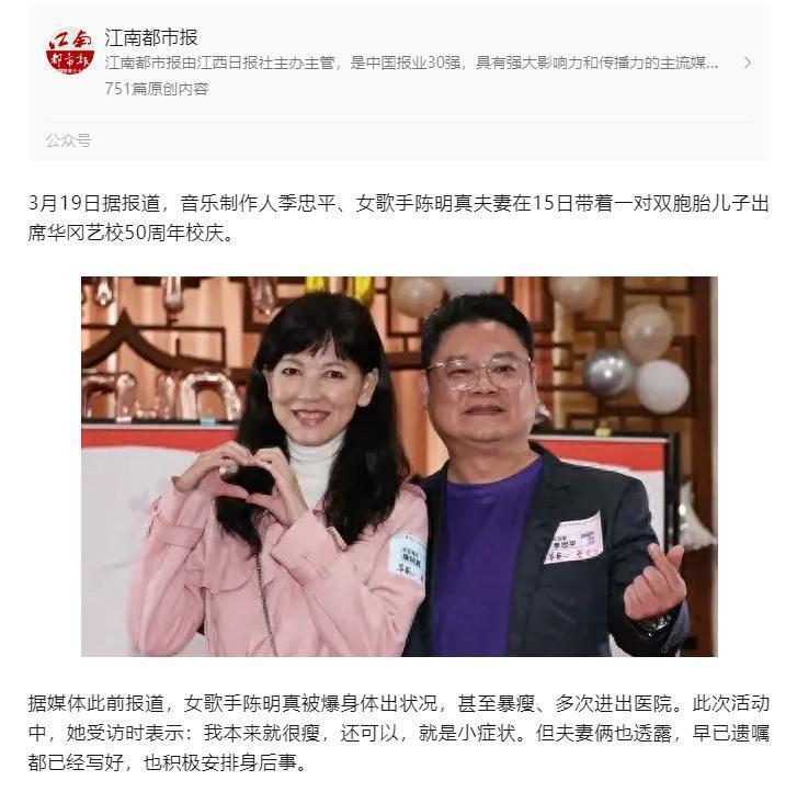 而陈明真和季忠平二东说念主不仅联袂走过了许多岁月,还共同迎来了双胞胎犬子的出身。