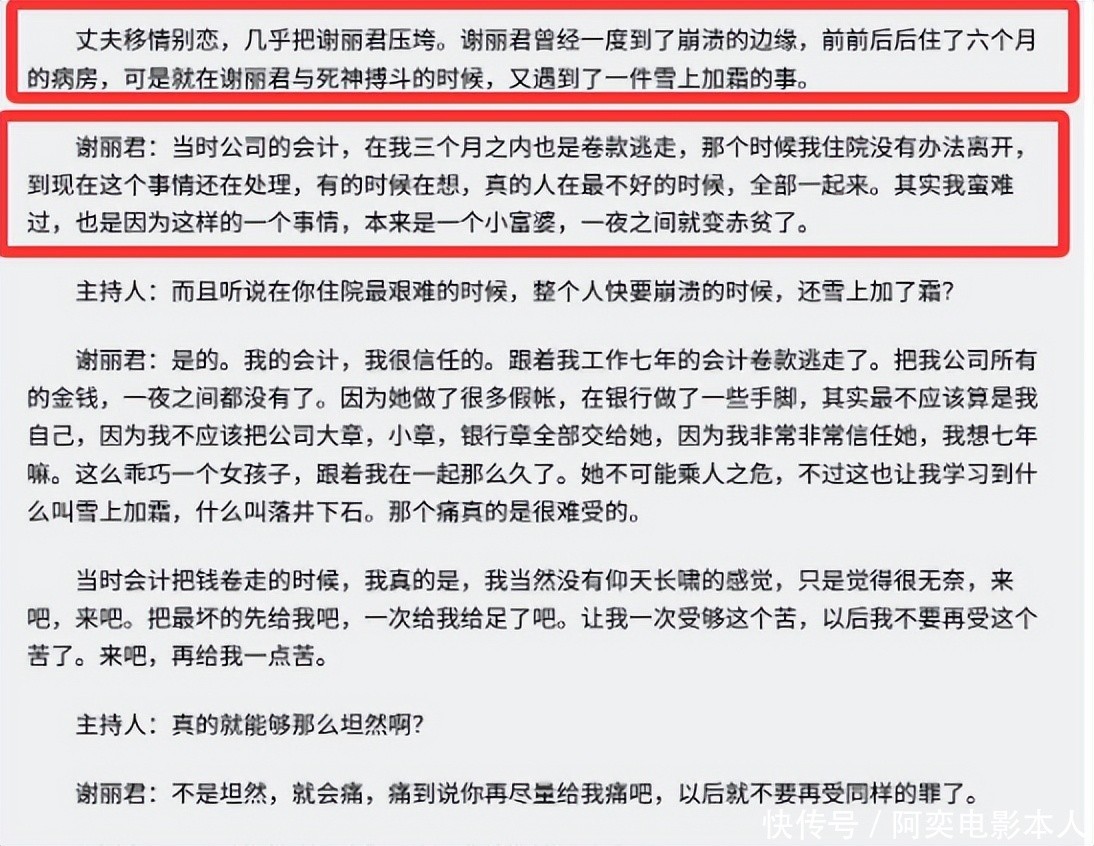 那段资格可以说让她毕生记起,自后在身心俱疲的情况下,谢丽君最终采取了铁心。