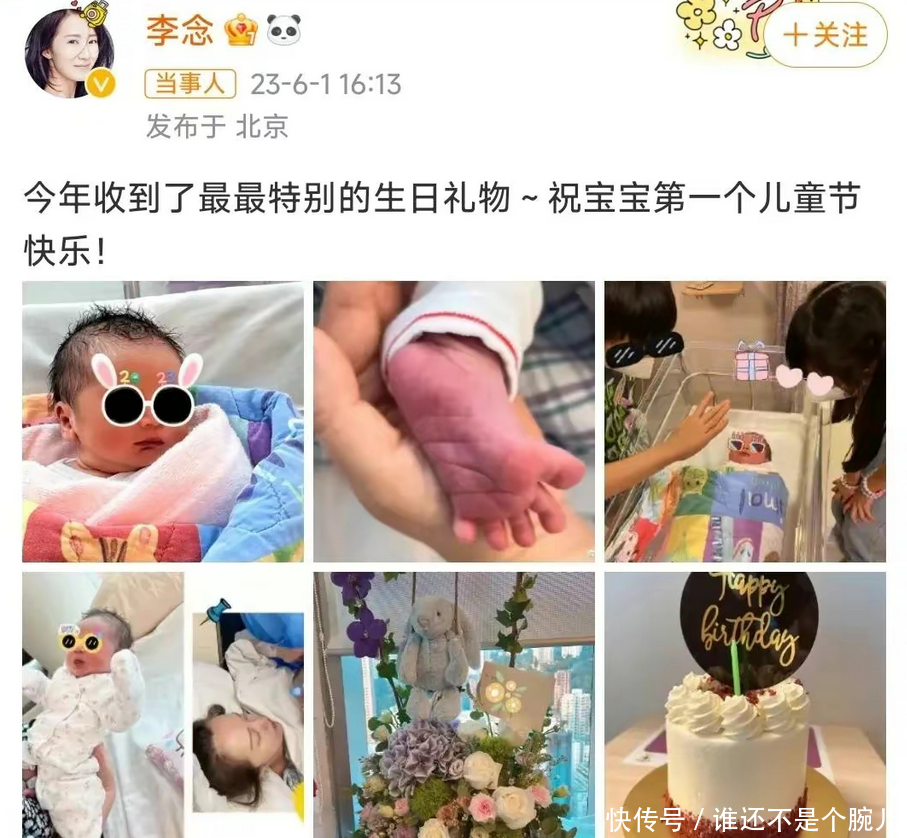2023年6月1日,李念晒照晓谕已生下孩子。