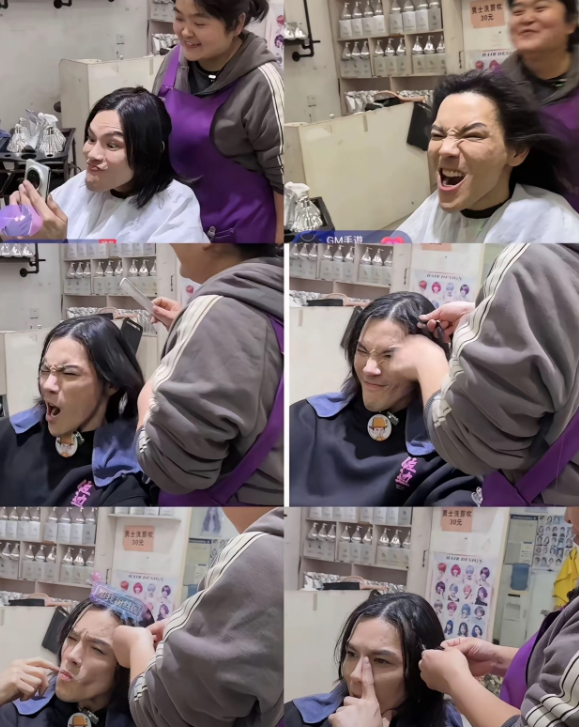 ug环球在晓红那边剪头发时,开了直播,几个小时里,他就约束在动,一会吃东西,一会作念鬼脸,一会神色夸张,一会跳起来,一会脚踢墙,晓华亦然把握易啊哈哈。
